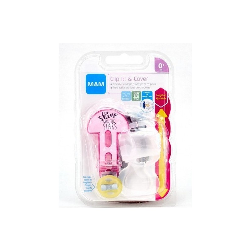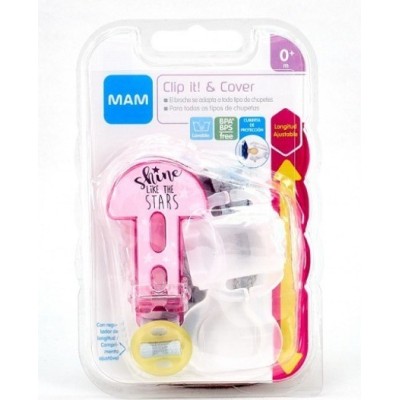 Cubierta de protección: mantiene las tetinas de los chupetes limpias y se adapta a todas las tetinas MAM. Se fija fácilmente al regulador de longitud.