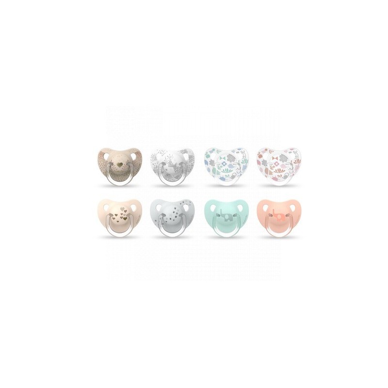 Chupetes para bebés de 6 a 18 meses con tetinas anatómicas de silicona.