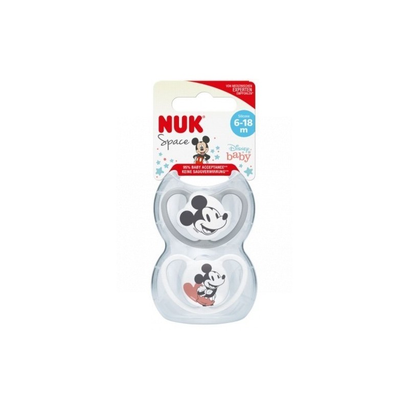Chupete de silicona plana para niños de 6-18 meses. MODO DE EMPLEO Técnicas de esterilización aprobadas por el fabricante: - Esterilización con agua hirviendo durante 5 minutos. - Apto para esterilización en microondas. - No se aconseja emplear técnicas de esterilización diferentes a las recomendadas por el fabricante. PRECAUCIONES Y ADVERTENCIAS - No sujetar cintas, cuerdas o cadenas al chupete diferentes a las destinadas a ese fin debido al riesgo de asfixia. - Inspeccionar cuidadosa y periódicamente el chupete para detectar posibles daños, especialmente cuando el niño tiene dientes. Tirar del chupete en todas direcciones y desechar el chupete a los primeros síntomas de deterioro o fragilidad. - No exponer el chupete a la luz solar directa o a una fuente de calor, ni en contacto con un desinfectante durante más tiempo del recomendado por el fabricante, en su caso, puesto que esto podría dañar la tetina. - No introducir la tetina en sustancias dulces, ni medicamentos