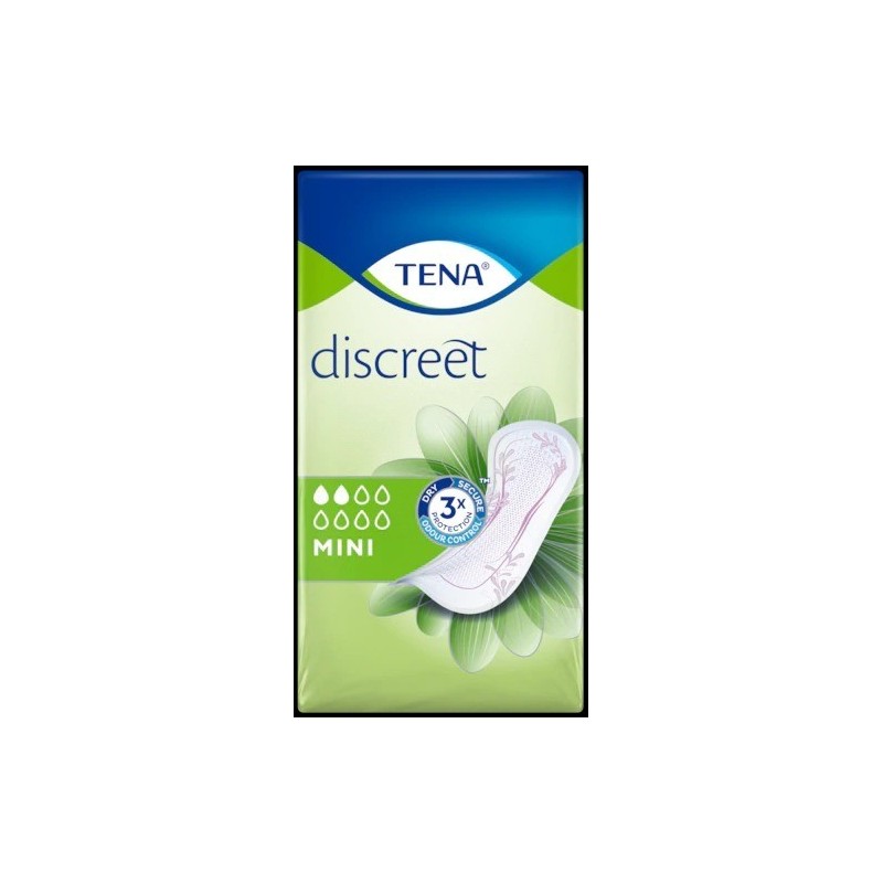 TENA Discreet Mini ofrece protección discreta y segura para las pérdidas de orina leves. Esta suave compresa está diseñada para mujeres con vejiga hiperactiva y ofrece protección discreta para el uso diario. La triple protección garantiza que los escapes, el olor y la humedad se absorban rápidamente. TENA Discreet Mini es la solución ideal para esos goteos imprevisibles y pérdidas de orina, aportándote la seguridad que necesitas y la discreción que deseas.