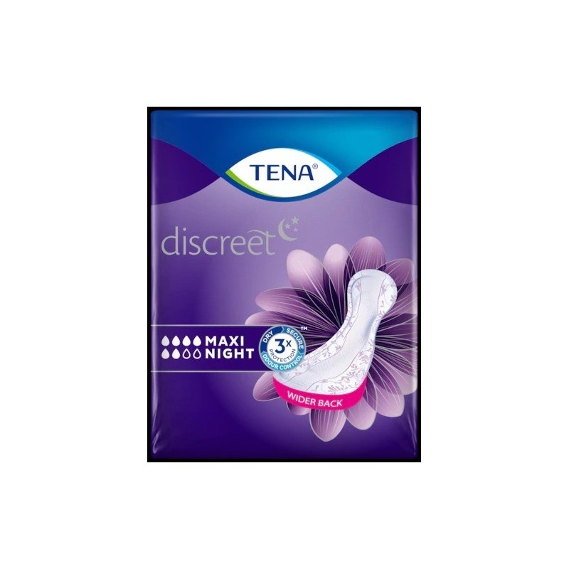 Las compresas para la incontinencia TENA Discreet Maxi Night ofrecen máxima protección a las mujeres, al ser más largas y anchas en la parte trasera, proporcionan mayor cobertura y protección en posición tumbada. Son ideales para las pérdidas de orina moderadas o abundantes, sobre todo por las noches. El máximo nivel de absorción, donde más lo necesitas, aleja la humedad de la piel rápidamente para que te sientas siempre seca, mientras que las microperlas eliminan el mal olor. Gracias a sus suaves laterales elásticos, esta compresa para la incontinencia urinaria se adapta perfectamente al cuerpo. Es muy cómoda, además protege de los escapes y los olores para que te sientas tranquila. Así disfrutarás de una buena noche de descanso.