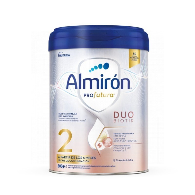 Fruto de nuestros últimos descubrimientos científicos traemos nuestra fórmula Almirón Profutura Duobiotik 2, nuestra fórmula más cercana a la leche materna, una generación de fórmulas especialmente desarrolladas para ayudar al sistema inmunitario* de tu bebé.