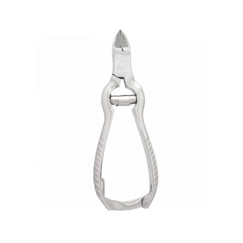 Un alicate de acero cromado con mangos ergonómicos y cuchillas afiladas a mano. Su diseño es adecuado para usuarios diestros y zurdos, pero no es apto para uñas acrílicas.