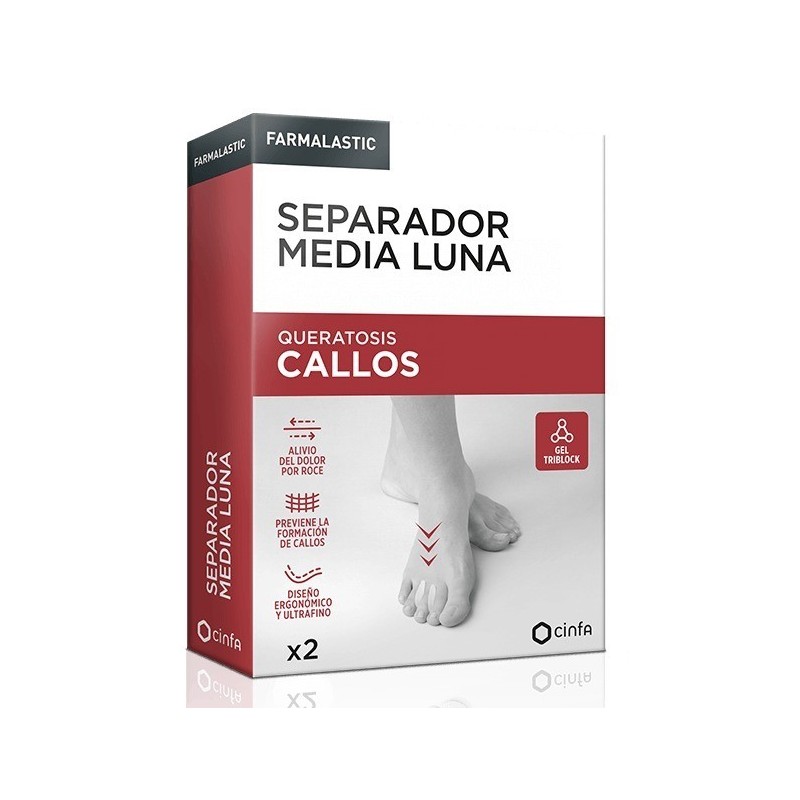 El Separador Media Luna, para adultos, está indicado para personas que tienen callos en el nacimiento de los dedos. Ayuda a aliviar el dolor de los callos provocado por el roce de los dedos. Protege el nacimiento de los dedos evitando la formación de rozaduras, callos, ojos de gallo, uñas encarnadas y ampollas. Separa los dedos y los coloca en su posición correcta evitando una superposición. El Separador Media Luna de Gel Triblock está diseñado ergonómicamente para adaptarse a los distintos dedos del pie con facilidad. El gel es multidireccional, suave y flexible, eliminando la fricción entre los dedos al caminar. Cuenta con memoria de recuperación, vuelve a su forma inicial tras su uso. Se puede reutilizar. Apto para utilizar con calcetines, medias y calzado habitual.