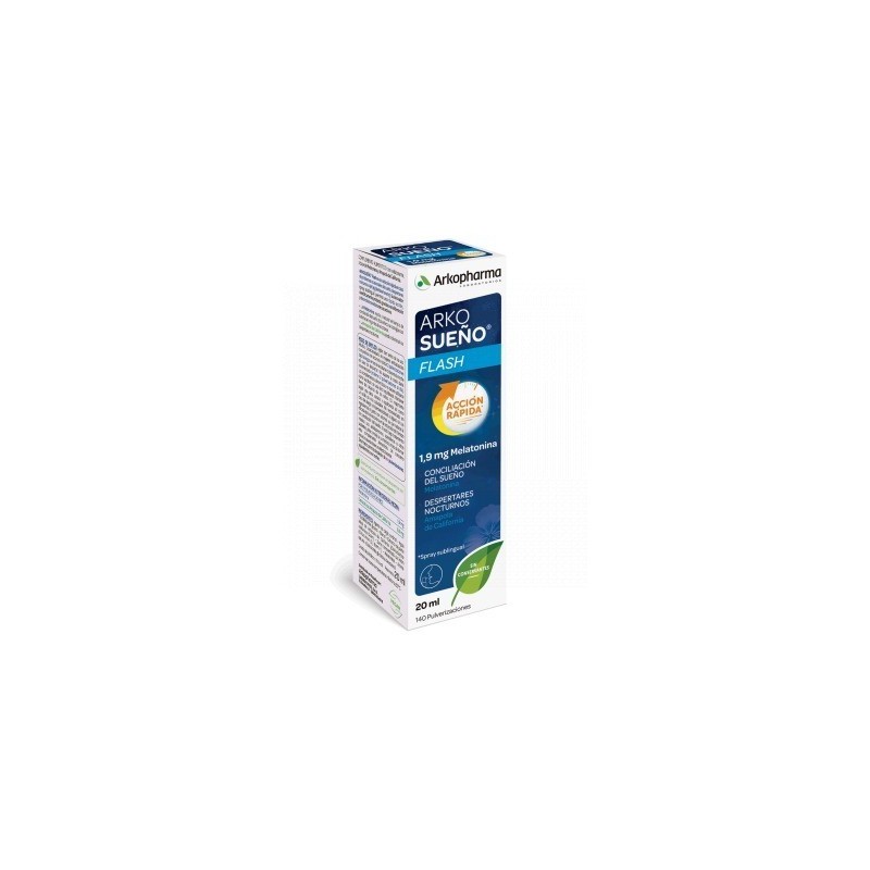 Los Laboratorios Arkopharma han desarrollado ARKOSUEÑO® FLASH, un innovador spray sublingual con accion rápida, científicamente probado. Gracias a una liberación y absoció inmediata de sus activos, es posible la acción rápida,:
